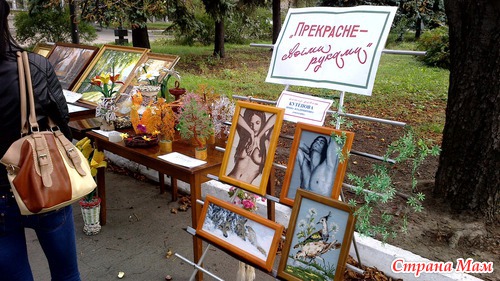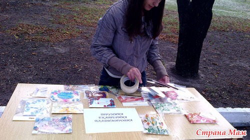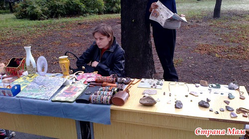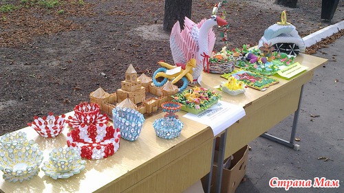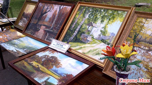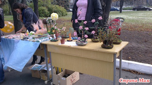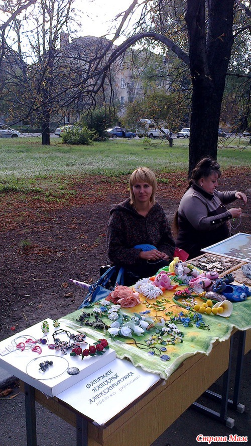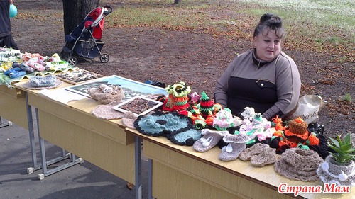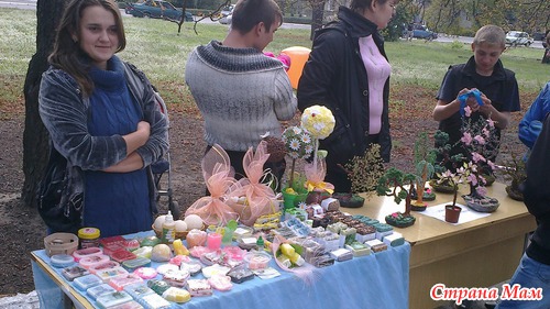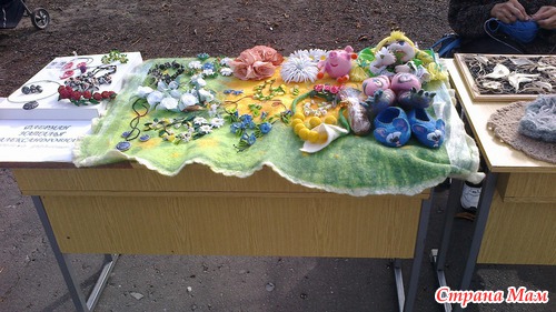 На аллее каштанов в центре были выставлены столы. на которых было разложено много красивых вещей, сделанных своими руками.