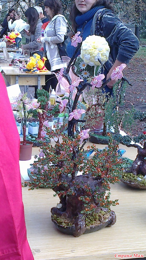 Тут были и картины, и плетеные из бисера деревья, и мыло ручной работы, и оригами, и куклы, и вязание и т. д.