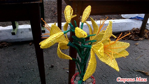 Вот такая красота из бумажных трубочек.