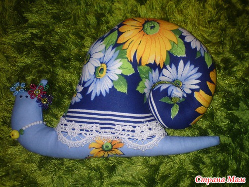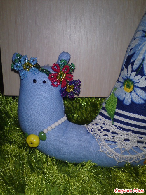 Шили вместе с дочей. Она - главный специалист по набивке и украшению улиточек. Она и веночек из бисера плела для весенней улиточки [