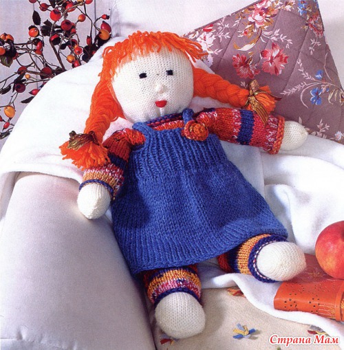 Вязаная кукла в сарафане.