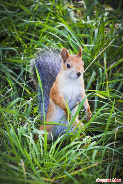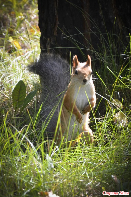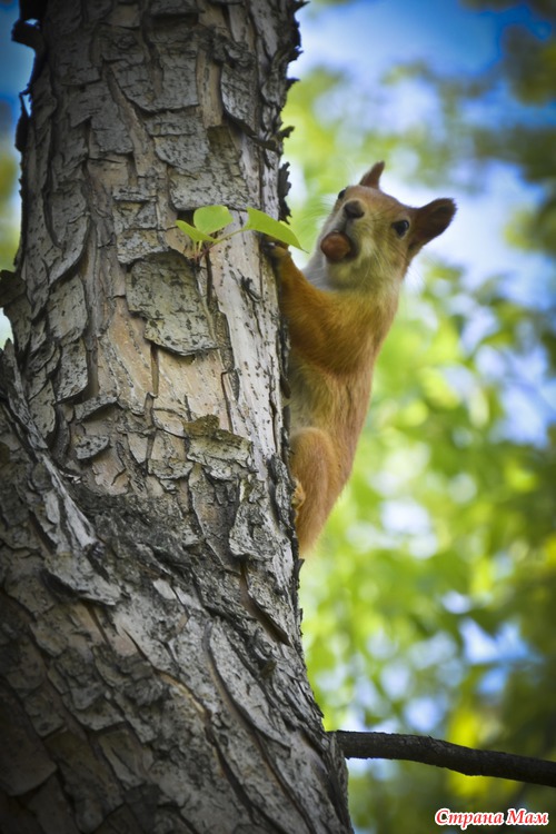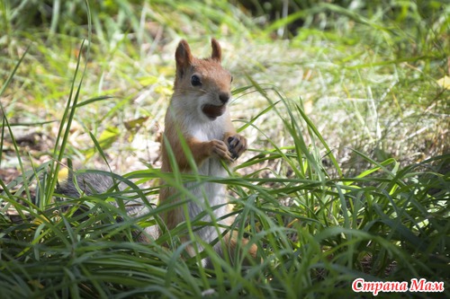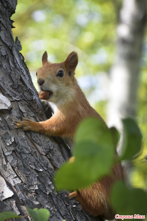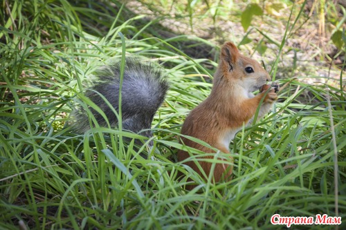 Какая белочка классная!!! Во рту с орехом смешная Напоминает жадную белку из ледникового периода . Маша, ты долго ее ловила? У нас какие то белки дикие, увидев человека сразу валят подальше