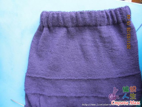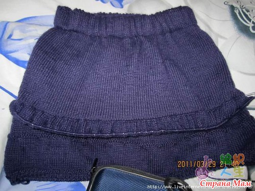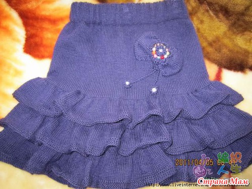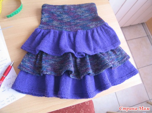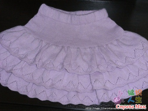 Таким образом нужно связать три волана. Присоединив последний, вяжем верх юбки. Провязываем примерно на 4-5 см выше для того, чтобы вшить резинку.