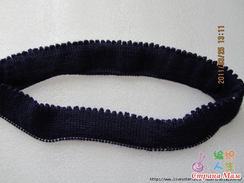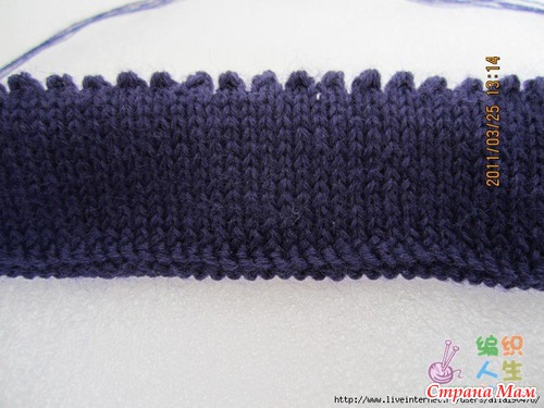 Начинала вязать на спицах 4 ряда платочной вязкой и одевала на машинку.