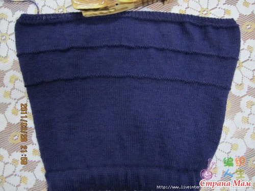 Далее вязала 7 см (21 ряд в моем случае) лицевой гладью, затем отложила вязание.
