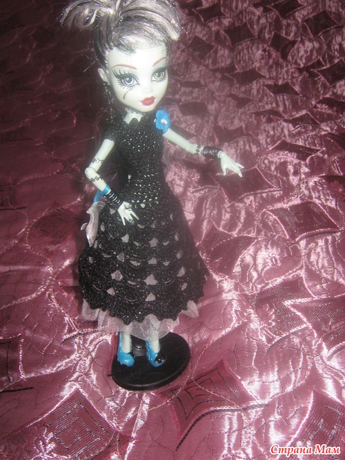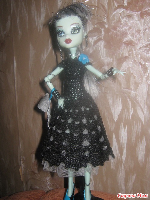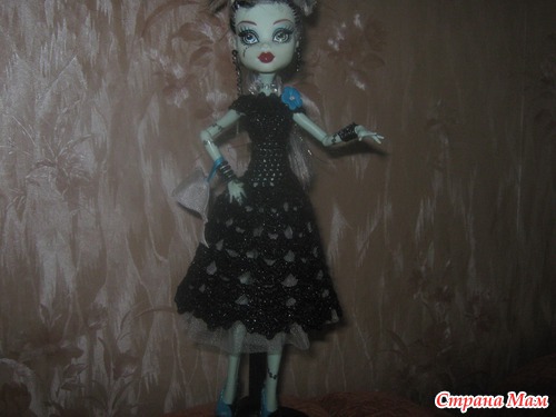 Спасибо!Я вязала так,скажем,"на глазок",в процессе постоянно примеряла(фигура у Монстряшек особенная)сверху - столб.без накида: набрала по плечикам,потом оставила отверстия для ручек,а подол любым ажуром можно связать.........сзади на липучке застежка,в качестве украшения - пуговка.
