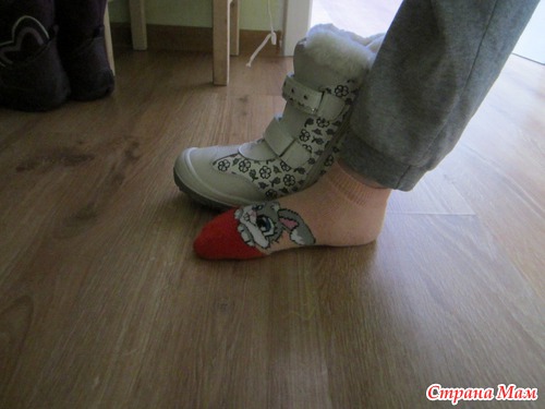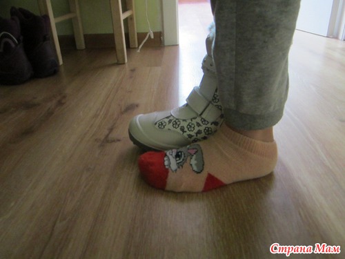 Добавляю фото как обещала, в сравнеении с дочкиной ногой, размер сейчас 31, нога в сантиметрах 19,5