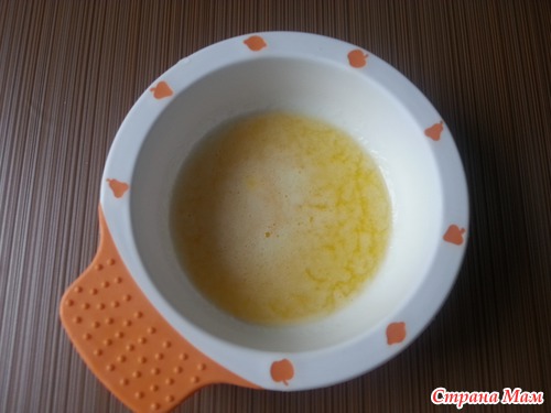 Заливаем в них молоко и растопленное масло, хорошенько перемешиваем.