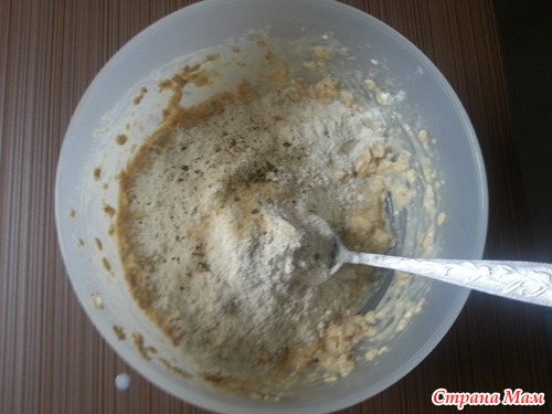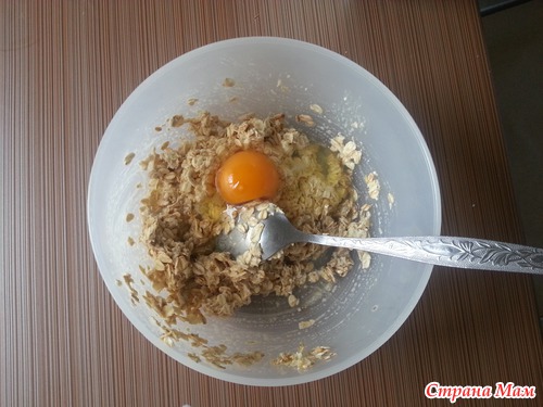 Добавляем яйцо и сыр и снова мешаем, чтобы наши хлопья равномерно во всем измазюкались))