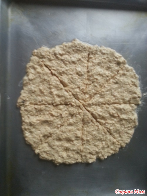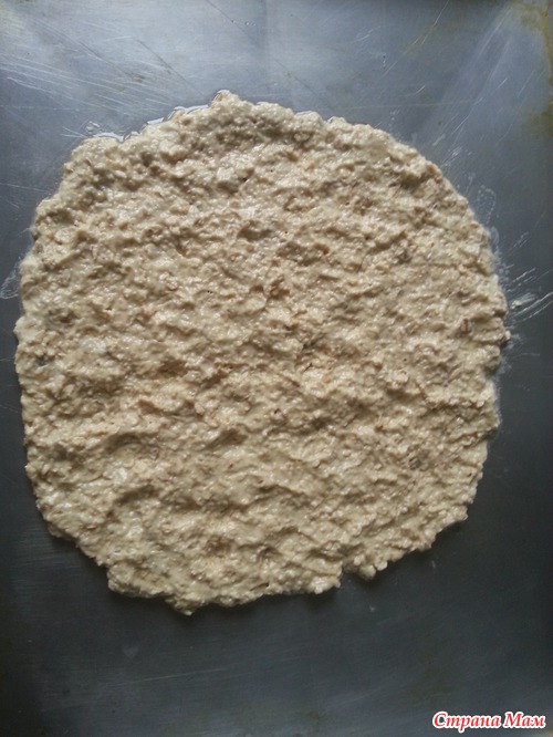 На смазанный маслом противень выкладываем нашу кашку и размазываем по кругу, чтобы вышла такая вот лепешка.