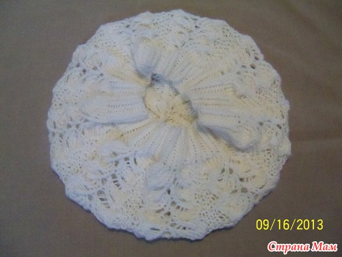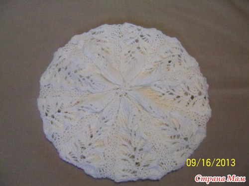 Замечательно,получилось. Недавно видела шапочку и думала как будет смотреться береткой. Отлично смотриться.Еще хлчу спросить:сколько у вас дорожек ажурных?