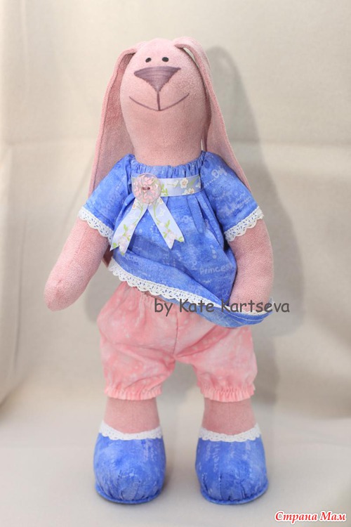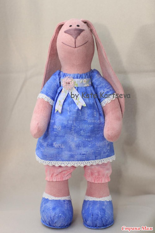 Всем привет! Эту зайку хочется трогать снова и снова. Она сшита из очень приятного материала - искусственной замши. Итальянская искусственная замша, американский 100% хлопок, наполнитель - синтепух. Рост Заи 35 см. Штанишки-панталончики: БРОНЬ Читать полностью
