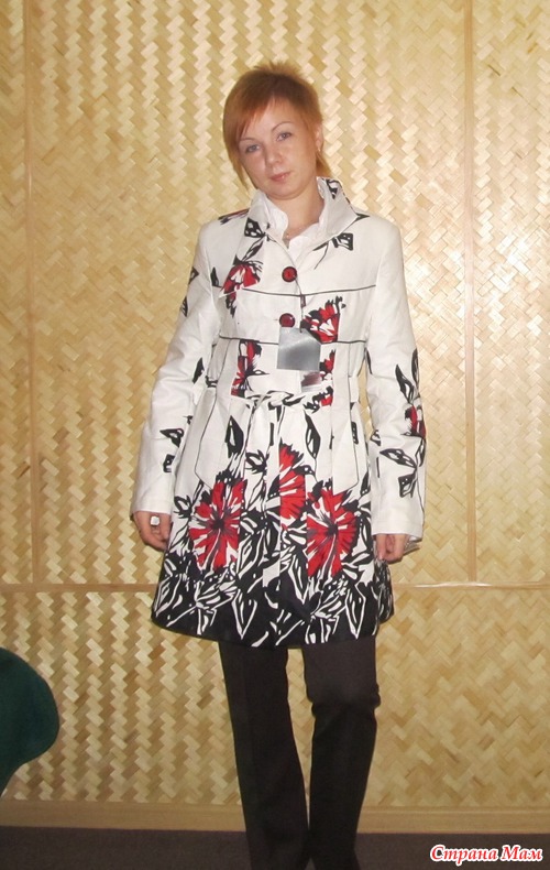 Плащик, чего-то я думала что он будет в красных бабочках, а пришел в цветах, мне не принципиально. Женственный такой, с каблучками носить, буду опять привыкать к такому стилю, а то в декрете все в ветровках, да в кроссовках по площадкам детским лазила.