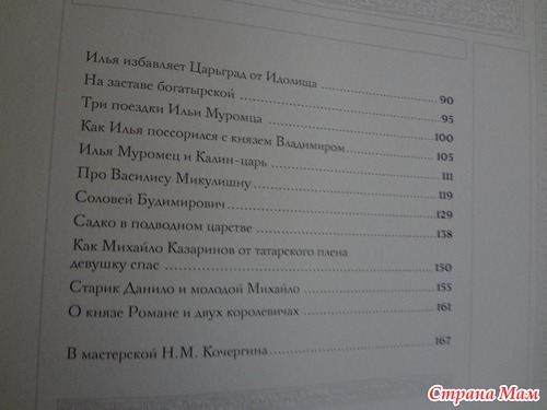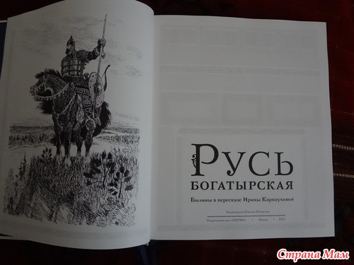Книга великолепная. Давно не держала в руках таких книг. Ребенку иллюстрации не очень понравились. А я в восторге. В Детгизе в 1949 году выходила книга "Русские богатыри", которая издавалась потом не раз, но черно-белые автолитографии Кочергина к "богатырской" серии были изданы только однажды - в 1964 году в эстампных мастерских издательства "Художник РСФСР" тиражом всего 500 экземпляров. Добавим к ним крайне редкие полностраничные полутоновые иллюстрации, тонированные белилами, и получим поистине уникальную книгу. По причине того, что иллюстрации собраны из разных изданий, рисунки иногда немного опаздывают за текстом, на иллюстрациях, не соответствующих тексту, есть сноска на оборотной стороне, с указанием отрывка повествования и номером страницы, так что неудобство практически не ощущается, зато мы можем любоваться большим количеством рисунков Кочергина.