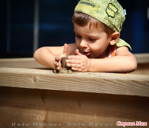 нну да здесь конечно песок, но на ум только этот стишок приходит "..пока мама жарит блинчики, я и из глины и песка приготовлю глинчики.." а какие супчики и кексики он делает, эхъ