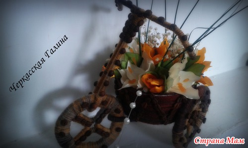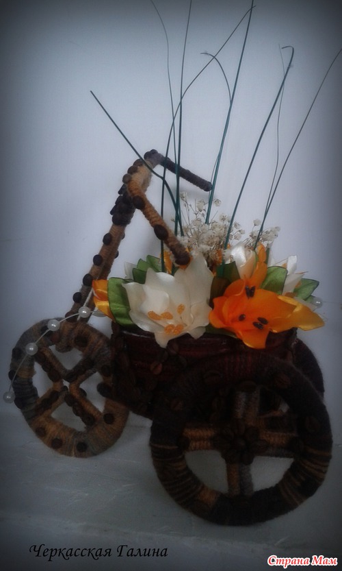 Розовая милая получилась, нарядная. А сам велосипед тоже самодельный же?