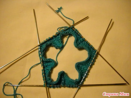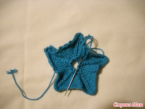 Наберите всё те же 110 петель по внешнему краю звезды (удобнее кольцевыми спицами).