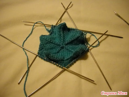 Провязываем 1 изнаночную и 21 лицевую на каждой спице, замыкаем в кольцо. Если вы вязали носки или варежки, никаких сложностей у вас не возникнет.