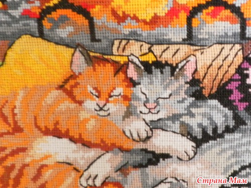 В процессе вышивания узнала о значении своей вышивки-ОЧАГ - уют в доме. Кошки (пара) - союз где каждый уважает свободу другого- это про нас(мы не в браке... но в любви )Вышивала на белоруской канве16,... размер вышивки получился35-31... нитки подбирала сама(меняла цвета)