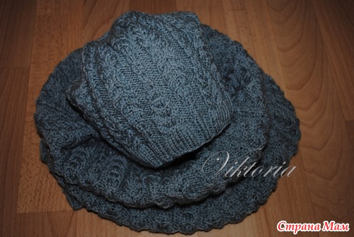 Снуд на круговых спицах а шапки на четырёх спицах (как носки) они у меня длинные, мне так удобней.