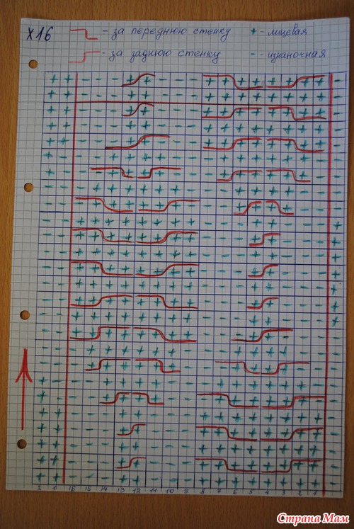 )Указала лицевые ряды, если вязать по кругу то после выполнения перекрученных рядов, поднимаем ещё 3 ряда.