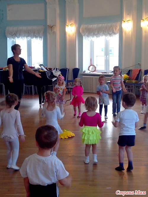 Записали Соню в ансамбль "Скворушки". Там набор с 3-х лет, правда, но на пробное занятие пустили всех желающих, потом уже смотрели, кто как себя ведет, кто плачет, кто отвлекается, кто от мамы оторваться не может, а кто втянулся сразу же