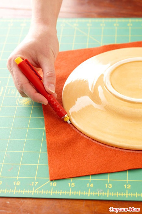 Прикладываем тарелку, подходящую по размеру, обводим круг.