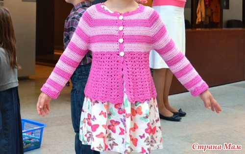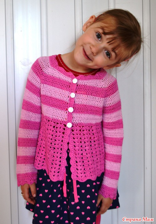 Розово-полосатая кофточка для девочки
