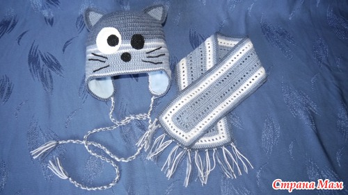 Доче моей очень понравилась такая шапочка. Ну и ей "кошечку" вот такую связала!
