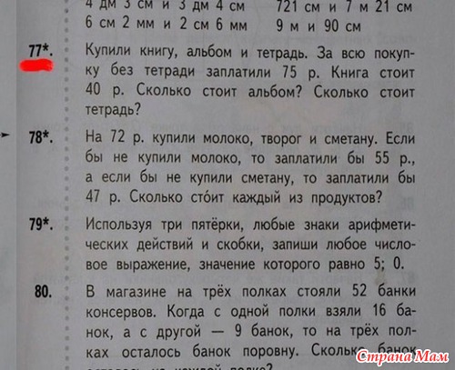 Мой сын тоже учиться( если что ) и ни одной подобной задачи за 5 тый год обучения я не видела. В начальных классах у него была программа ПНШ, а у подружкиного 2000 100 и ни разу такого бреда не попадалось. Хотелось бы узнать авторов учебников и ради интереса в книжном магазине глянуть, есть ли там такие задачи!!!!?