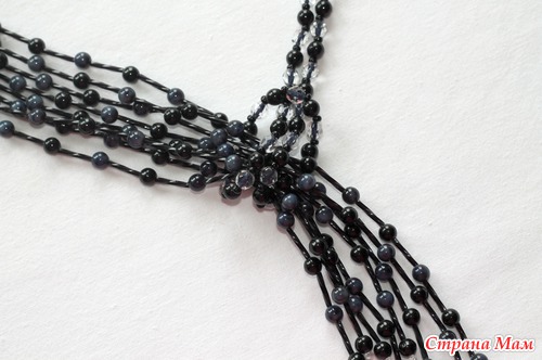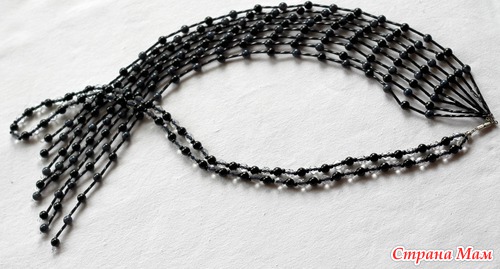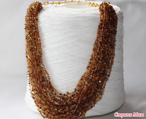Прошлой осенью начала вязать свою первую воздушку. Нанизала смесь из бисера и чешских бусин на мононить, связала пару метров и оставила это дело. Закончила на прошлой неделе)