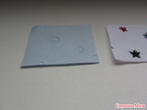 вот такие кусочки ткани были приложены к пеленочке. Я налила немножко водички, чтобы было видно как она скатывается