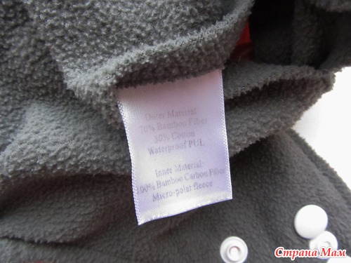 Эти подгузники изготовлены из натуральных тканей. Сверху тоненький трикотаж (70% бамбук,30% хлопок) с мембраной, защищающей от протекания, а с внутренней стороны - микрофлис (100% бамбук).