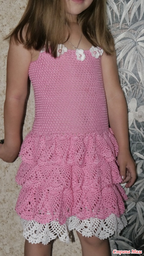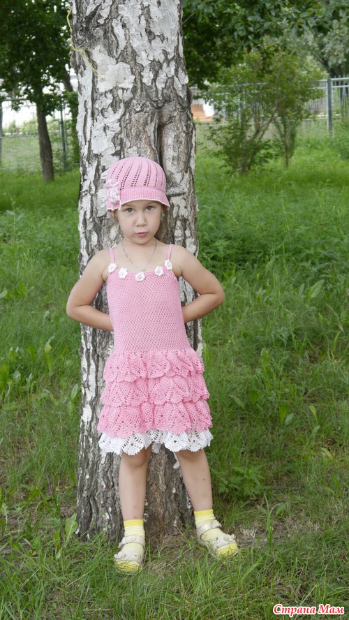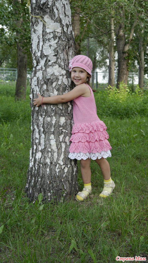Этот сарафанчик был связан еще летом. Уже успели прогулять, а в детский сад он пошел сегодня впервые