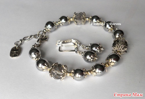 1. Комплект с гематитом (браслет и серьги)
