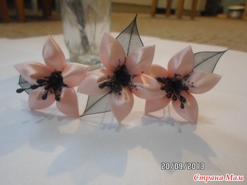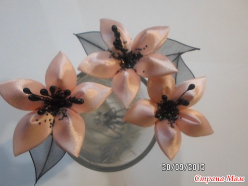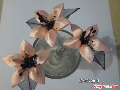 Девушка просила лилии на шпильках к платью, цвет- черный с персиковым. А какие именно не знает. Вот, что у меня получилось: А вот примерно так они будут в прическе: Вот. Так что меня можно поздравить с первым заказом!! Девушке очень понравилось. Читать полностью