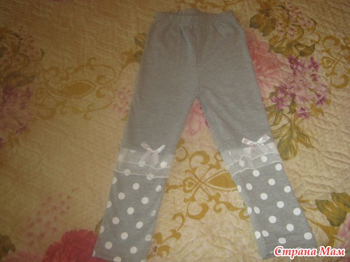 Комплектик достаточно качественный. Нитки почти нигде не торчат, только в одном месте нашла небольшие ниточки. В целом комплектом очень довольна. Только обратите внимание, что лосины не широкие, то есть подойдут на худеньких девочек. Горошки некоторые на штанишках были потертые.