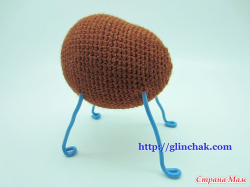 Отверстия для ножек делаем, расширяя расстояние между Сбн крючком или спицой. Отверстия должны быть совсем небольшими – на диаметр проволоки.