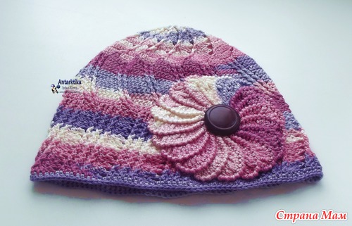 Шапочка связалась на одном дыхании, а вот цветок изрядно меня замучал