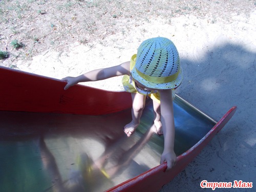 Здравствуйте, связала еще летом к подаренному костюмчику, да как-то руки не доходили выставить). Пряжа чистый хлопок 125/50г, название не помню, схема известная. Переделывала Бог знает сколько раз - не могла в размер попасть, а первый раз дольки как у арбуза ровные получались, а не спиралью, хотя казалось бы, схема легкая))))) шляпа первая - с полями тоже не сразу вышло, даже в конечном результате немного волнит, но если хорошо пропарить - ничего, хорошо смотрится, ребенок правда не всегда доводит дело до утюга, она у меня с характером, увидела, что сохнет - если сухая, то одевай сию секунду(((()))) Генерал в юбке растет)))) Объем головы 46-48 на 2 года.