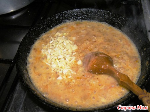Затем добавляем измельченный чеснок.