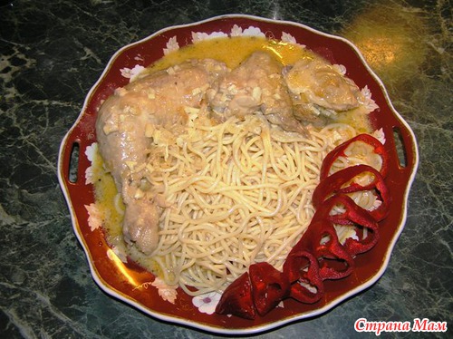 Сегодня я съела две порции, причем одну - с курицей, а вторую - просто положила гарнир с соусом, уж очень соус в этом блюде хорош!