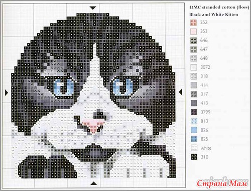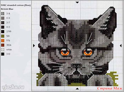А вот для черного котика с белой мордочкой схема дана без ушей. Как видно на фото, с помощью этой вышивки сделаны грелки на кружки. А ушки нужно выкроить из подходящего материала и вшить в боковые швы. Читать полностью