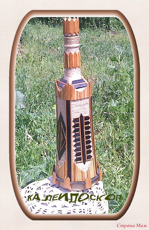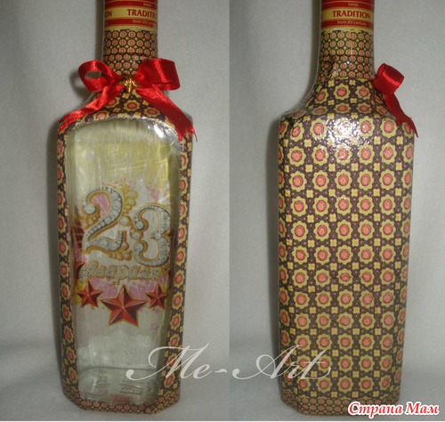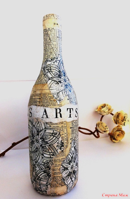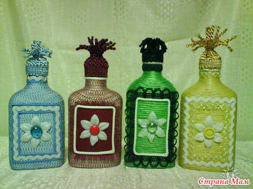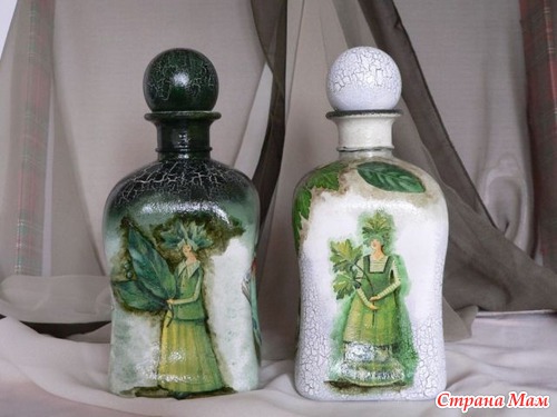 Спасибо. Постаралась собрать не просто однотипное исполнение декупажа, а разный подход к украшению бутылок. Кстати, бутылка у Вас получилась красивой. просто фон её портит. Сфотографируйте на светлом фоне - будет сама нежность