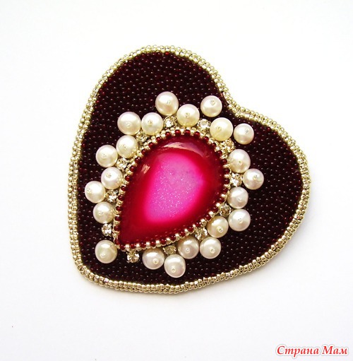 Тэги: бисер, вышитая брошь, крупная брошь, брошь в форме сердца