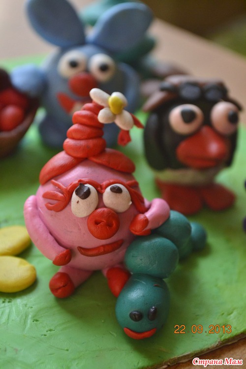 По этим описанием делела смешариков из мастики для торта!