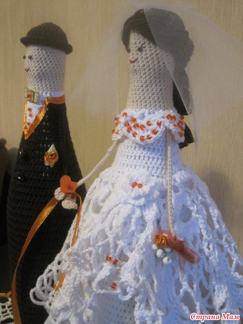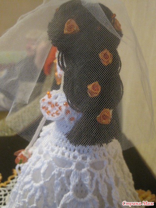 спасибки, я связала за три дня, а потом день убила на мелкоту (розочки в голове, бутоньерку, манжеты и пр. , вязала из кабле семеновской, вторым крючком, принесла накануне свадьбы , чтобы в ресторане на стол поставили) хотела на девичкнике подарить, но , как всегда, не успела)))) жду ваших)