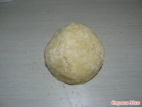 Холодное масло натереть на крупной терке, к нему добавить остальные ингредиенты, перемешать рукой, не сминая, а потом быстро замесить. Это песочное тесто, поэтому нужно не столько месить, сколько собирать получившиеся крошки в одно целое. Делаем все очень быстро, иначе не получится рассыпчатой выпечки. Признаться честно, у меня сегодня впервые вышло настоящее песочное тесто, раньше я с ним категорически не дружила. Видимо, условия подходящие: дома холодно (масло не таяло), воду горячую отключили на две недели
