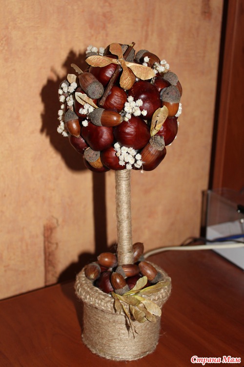 Ура! Начались школьные и дошкольные будни, конкурсы и задания. Прощайте спокойные выходные, здравствуйте бессонные ночи. Сделали с дочей на конкурс в садик наше первое дерево. В пятницу собрали с дочкой каштаны и желуди, сегодня все наклеили. Подруги оцените!