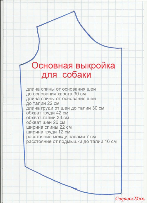 Основная выкройка для собаки (длина спины 30 см, обхват груди 42 см)